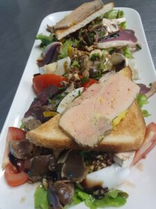 La Dordogne est connue dans le monde entier pour sa gastronomie. Foie gras, confit, magret, noix, cèpes… autant de produits emblématiques que l’on retrouve régulièrement sur la carte de l’auberge. Mais le chef aime aussi revisiter des recettes plus simples avec la même exigence de fraîcheur et d’authenticité.